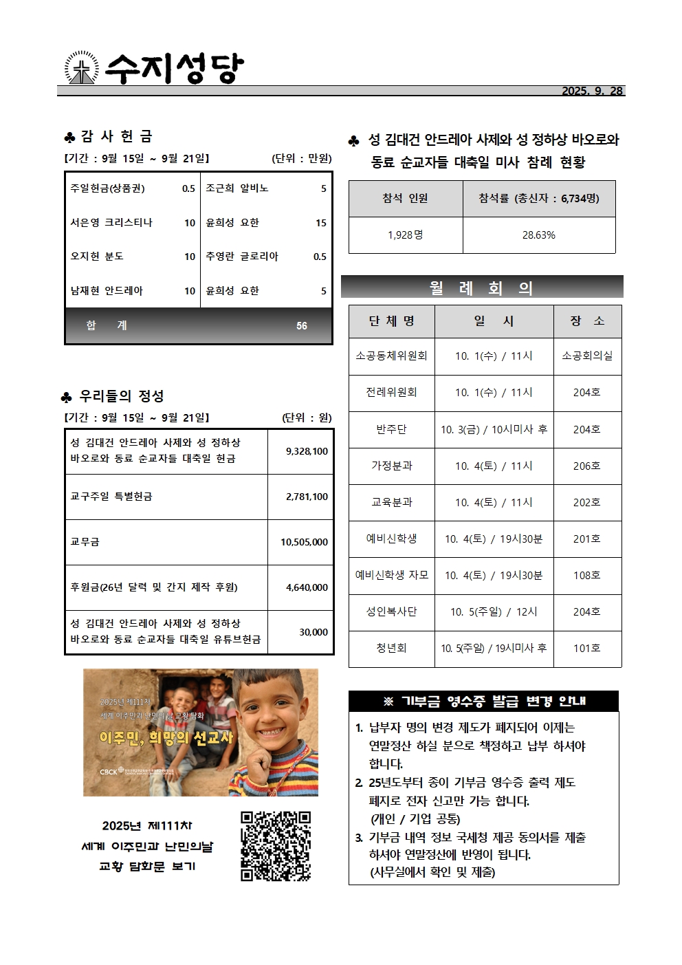 2025. 9. 28 - 연중 제26주일(세계 이주민과 난민의 날) > 본당주보