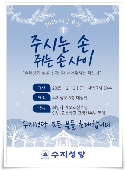 251212-대림특강 페이지 정보 작성자 홍보팀 댓글 0건 조회 84회 작성일 25-12-17 00:10 목록 본문 225년 12월12일 대림특강 이전글251213-은총잔치 25.12.17 다음글251209-지역별 판공성사 1일차 25.12.14 댓글 0 댓글목록 등록된 댓글이 없습니다.