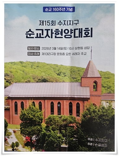 260314-수지지구 순교자현양대회 페이지 정보 작성자 홍보팀 댓글 0건 조회 17회 작성일 26-03-20 11:38 목록 본문 수지지구 순교자현양대회일시 : 2026년03월14일 (토)장소 : 상현동 성당 이전글260315_아치에스행사 26.03.20 다음글260314-선교분과 답사 26.03.20 댓글 0 댓글목록 등록된 댓글이 없습니다.