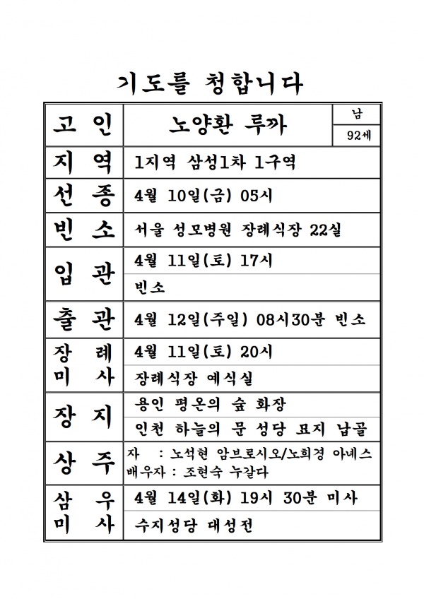 연도 연도공지(노양환 루까) 페이지 정보 작성자 관리자 댓글 0건 조회 19회 작성일 26-04-10 14:00 목록 본문 기도를 청합니다. 다음글2026년 4월 성가표 26.04.07 댓글 0 댓글목록 등록된 댓글이 없습니다.
