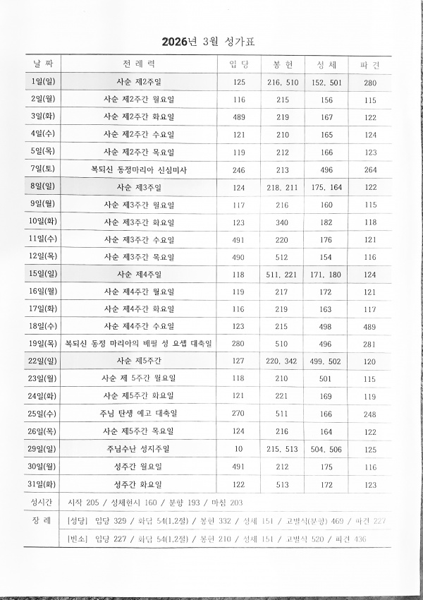 일정표 2026년 3월 성가번호 페이지 정보 작성자 관리자 댓글 0건 조회 334회 작성일 26-03-03 21:28 목록 본문 . 이전글3월 일정표 26.03.04 다음글연도공지(김영미 율리아나) 26.03.01 댓글 0 댓글목록 등록된 댓글이 없습니다.